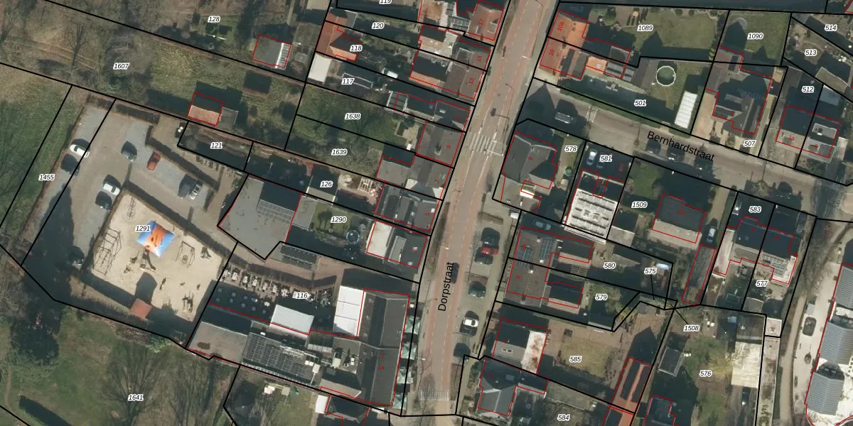 Gebruik de zoekbalk of klik op een perceel voor informatie over de adressen binnen dit perceel.