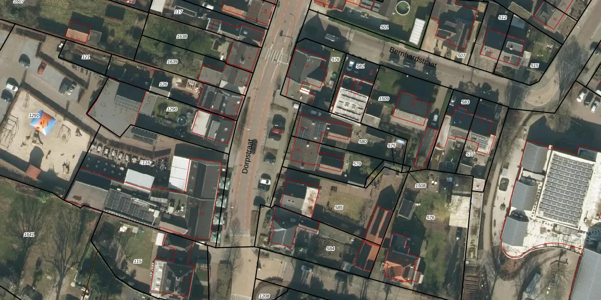 Gebruik de zoekbalk of klik op een perceel voor informatie over de adressen binnen dit perceel.