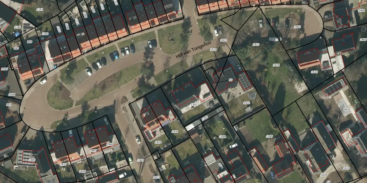 Het perceel waarop Hof van Tongerloo 40 staat heeft een oppervlakte van 610 m². Dit is een groot perceel. De perceeloppervlakte wordt geregistreerd door het Kadaster. Gedetailleerde informatie over de maten van dit perceel kunt u vinden in het rapport Kadastrale kaart met maatvoering van Hof van Tongerloo 40.