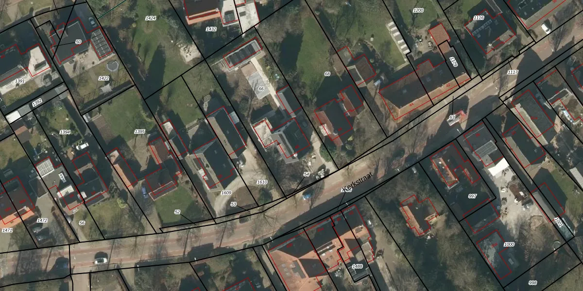 Het perceel waarop Kerkstraat 48 staat heeft een oppervlakte van 1144 m². Dit is een zeer groot perceel. De perceeloppervlakte wordt geregistreerd door het Kadaster. Gedetailleerde informatie over de maten van dit perceel kunt u vinden in het rapport Kadastrale kaart met maatvoering van Kerkstraat 48.