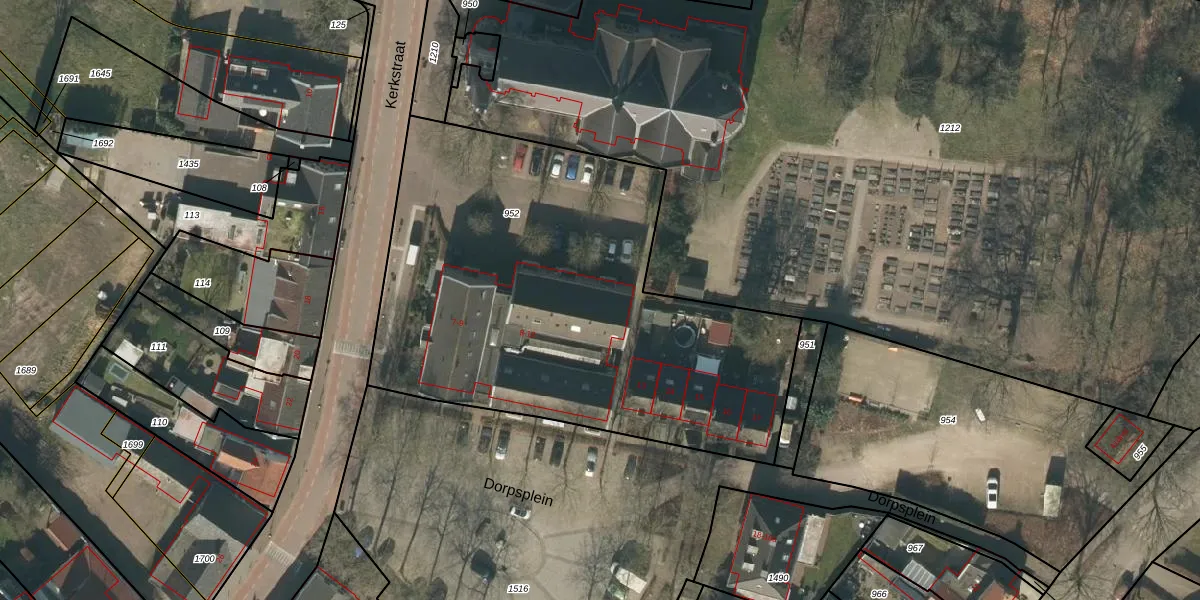 Het perceel waarop Kerkstraat 5 staat heeft een oppervlakte van 2590 m². Dit is een zeer groot perceel. De perceeloppervlakte wordt geregistreerd door het Kadaster. Gedetailleerde informatie over de maten van dit perceel kunt u vinden in het rapport Kadastrale kaart met maatvoering van Kerkstraat 5.