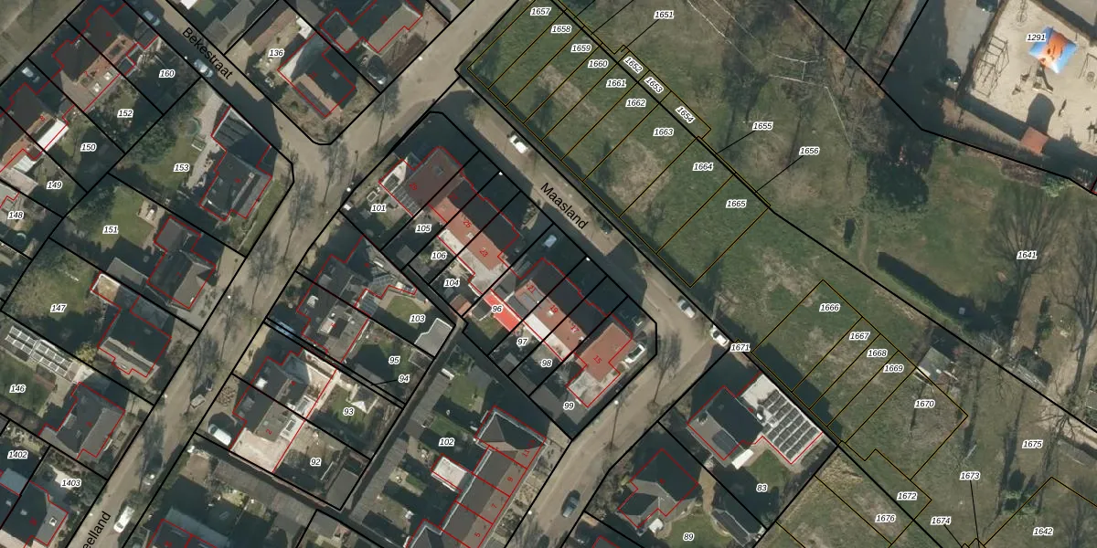 Het perceel waarop Maasland 21 staat heeft een oppervlakte van 214 m². Dit is een middelgroot perceel. De perceeloppervlakte wordt geregistreerd door het Kadaster. Gedetailleerde informatie over de maten van dit perceel kunt u vinden in het rapport Kadastrale kaart met maatvoering van Maasland 21.