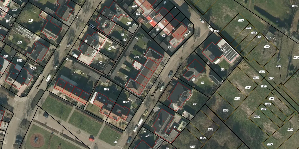 Maasland 7 is gelegen op kadastraal perceel GLE01F102. Deze kadastrale aanduiding is uniek en wordt gebruikt door het Kadaster om eigendomsrechten en andere zakelijke rechten vast te leggen. Het perceel maakt onderdeel uit van de kadastrale gemeente Goirle.