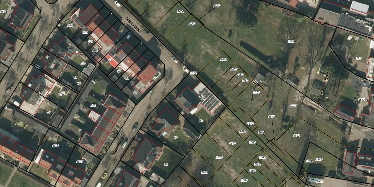 Het perceel waarop Maasland 8 staat heeft een oppervlakte van 547 m². Dit is een groot perceel. De perceeloppervlakte wordt geregistreerd door het Kadaster. Gedetailleerde informatie over de maten van dit perceel kunt u vinden in het rapport Kadastrale kaart met maatvoering van Maasland 8.