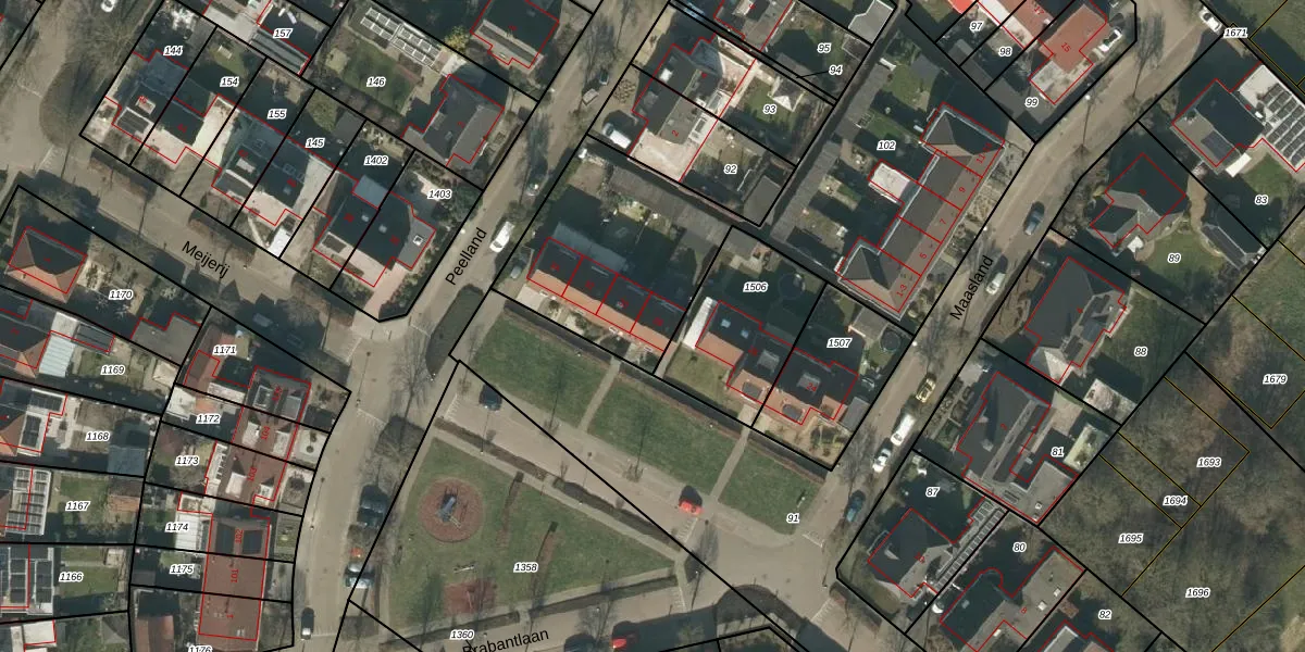 Het perceel waarop Meijerij 28 staat heeft een oppervlakte van 1908 m². Dit is een zeer groot perceel. De perceeloppervlakte wordt geregistreerd door het Kadaster. Gedetailleerde informatie over de maten van dit perceel kunt u vinden in het rapport Kadastrale kaart met maatvoering van Meijerij 28.