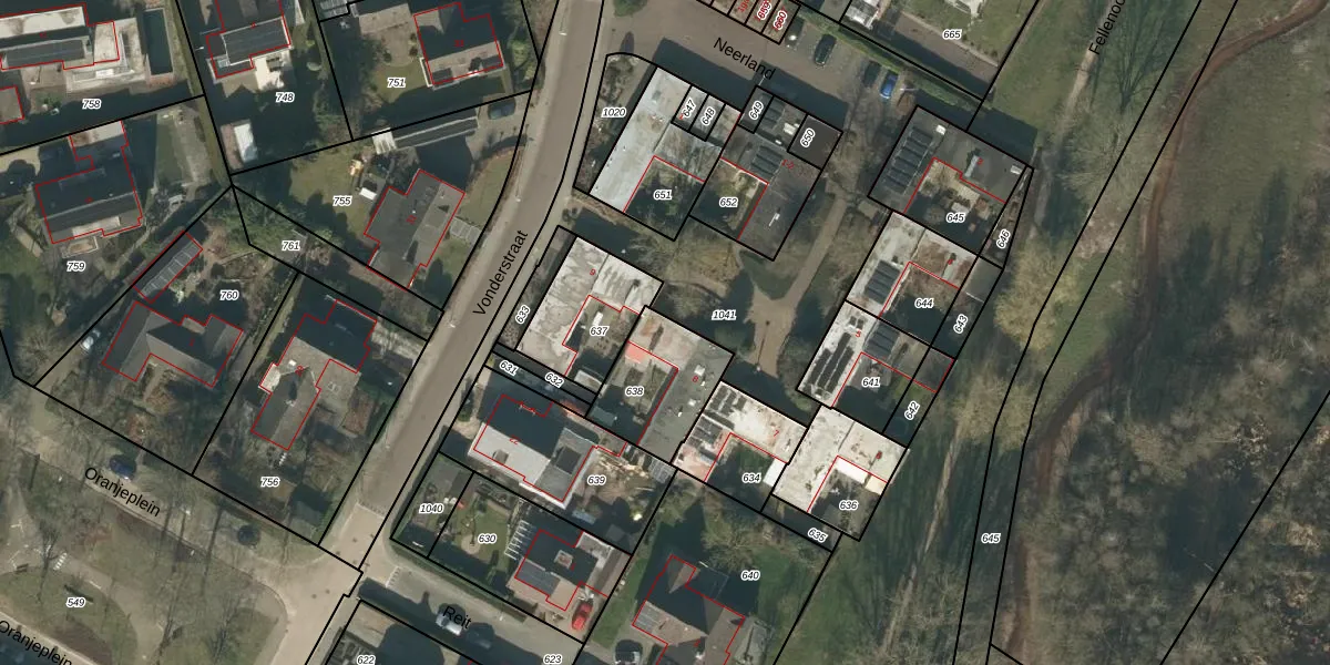 Gebruik de zoekbalk of klik op een perceel voor informatie over de adressen binnen dit perceel.