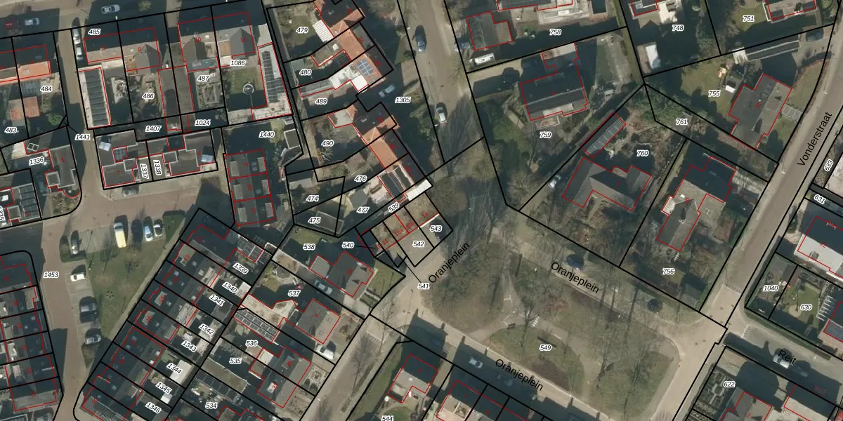 Gebruik de zoekbalk of klik op een perceel voor informatie over de adressen binnen dit perceel.