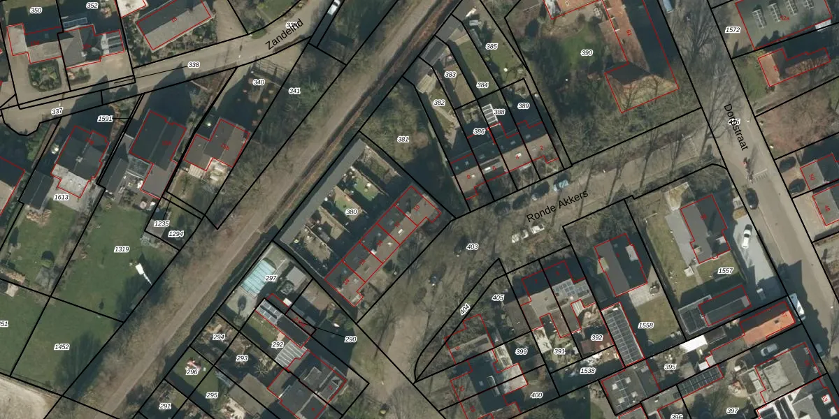 Ronde Akkers 10 is gelegen op kadastraal perceel GLE01F380. Deze kadastrale aanduiding is uniek en wordt gebruikt door het Kadaster om eigendomsrechten en andere zakelijke rechten vast te leggen. Het perceel maakt onderdeel uit van de kadastrale gemeente Goirle.
