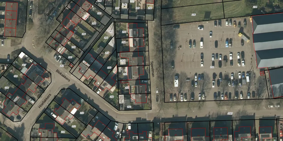 Het perceel waarop Speelman 5 staat heeft een oppervlakte van 225 m². Dit is een middelgroot perceel. De perceeloppervlakte wordt geregistreerd door het Kadaster. Gedetailleerde informatie over de maten van dit perceel kunt u vinden in het rapport Kadastrale kaart met maatvoering van Speelman 5.