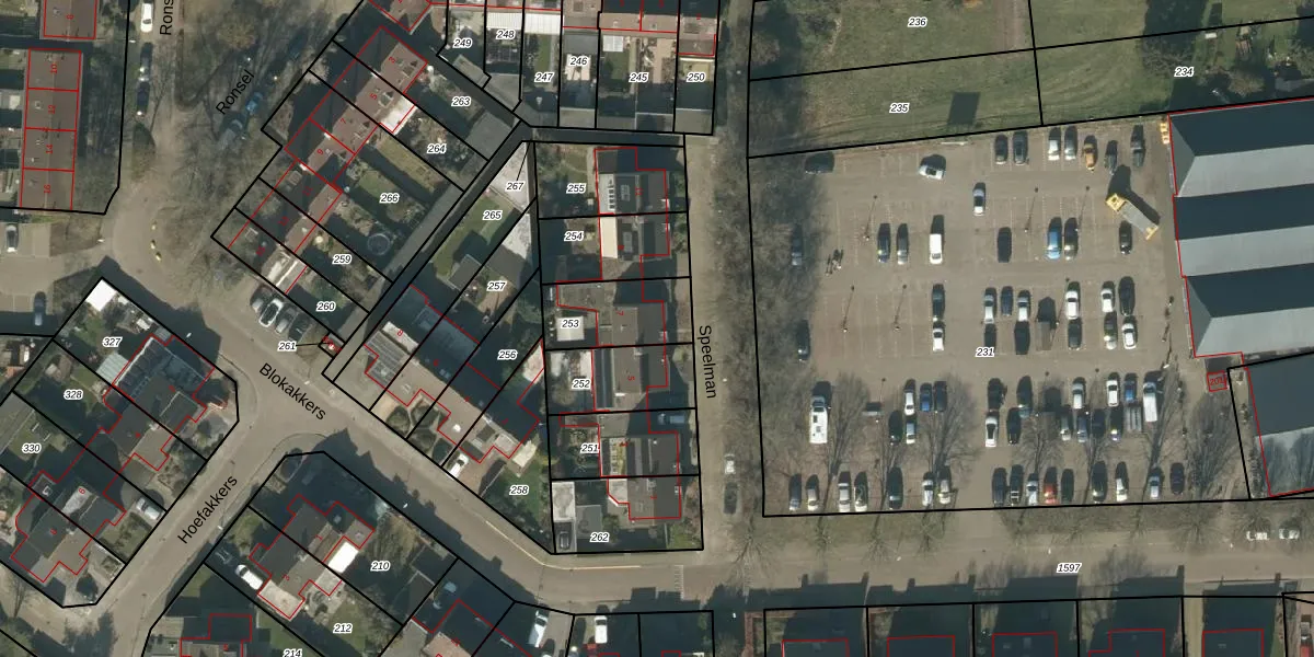 Het perceel waarop Speelman 7 staat heeft een oppervlakte van 226 m². Dit is een middelgroot perceel. De perceeloppervlakte wordt geregistreerd door het Kadaster. Gedetailleerde informatie over de maten van dit perceel kunt u vinden in het rapport Kadastrale kaart met maatvoering van Speelman 7.