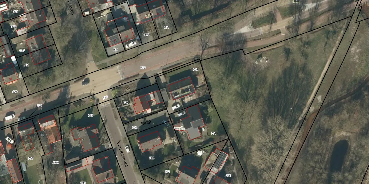 Het perceel waarop Strijp 3 staat heeft een oppervlakte van 540 m². Dit is een groot perceel. De perceeloppervlakte wordt geregistreerd door het Kadaster. Gedetailleerde informatie over de maten van dit perceel kunt u vinden in het rapport Kadastrale kaart met maatvoering van Strijp 3.