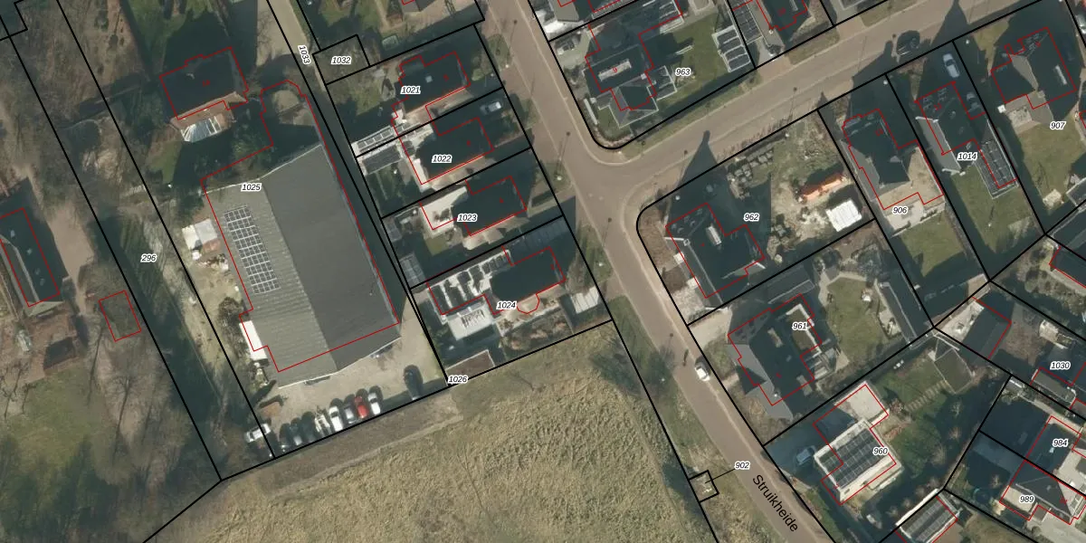 Struikheide 2 is gelegen op kadastraal perceel GLE01K1024. Deze kadastrale aanduiding is uniek en wordt gebruikt door het Kadaster om eigendomsrechten en andere zakelijke rechten vast te leggen. Het perceel maakt onderdeel uit van de kadastrale gemeente Goirle.