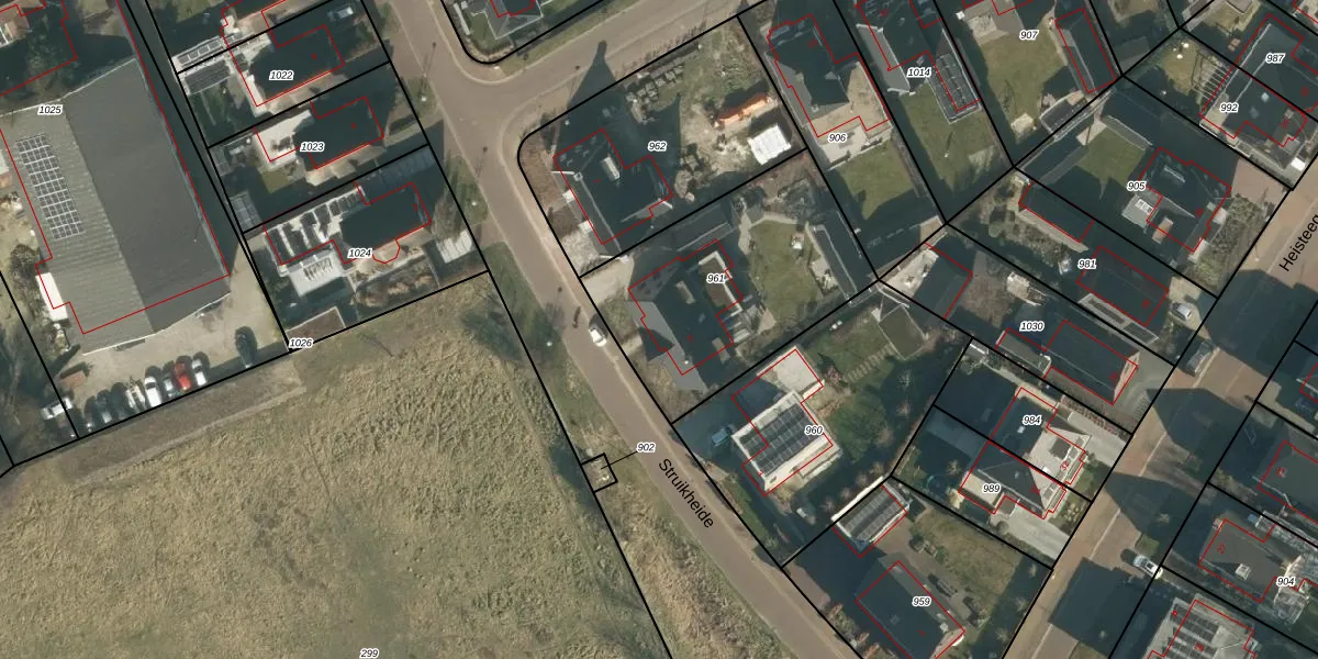 Struikheide 5 is gelegen op kadastraal perceel GLE01K961. Deze kadastrale aanduiding is uniek en wordt gebruikt door het Kadaster om eigendomsrechten en andere zakelijke rechten vast te leggen. Het perceel maakt onderdeel uit van de kadastrale gemeente Goirle.