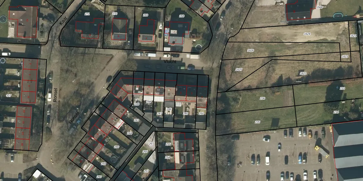 Het perceel waarop Vlucht 5 staat heeft een oppervlakte van 353 m². Dit is een groot perceel. De perceeloppervlakte wordt geregistreerd door het Kadaster. Gedetailleerde informatie over de maten van dit perceel kunt u vinden in het rapport Kadastrale kaart met maatvoering van Vlucht 5.