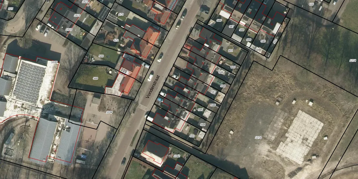 Vonderstraat 10 is gelegen op kadastraal perceel GLE01F596. Deze kadastrale aanduiding is uniek en wordt gebruikt door het Kadaster om eigendomsrechten en andere zakelijke rechten vast te leggen. Het perceel maakt onderdeel uit van de kadastrale gemeente Goirle.