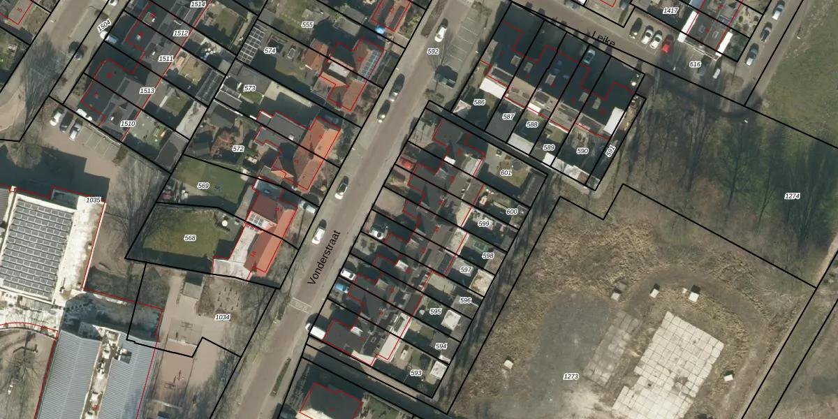 Vonderstraat 14 is gelegen op kadastraal perceel GLE01F598. Deze kadastrale aanduiding is uniek en wordt gebruikt door het Kadaster om eigendomsrechten en andere zakelijke rechten vast te leggen. Het perceel maakt onderdeel uit van de kadastrale gemeente Goirle.