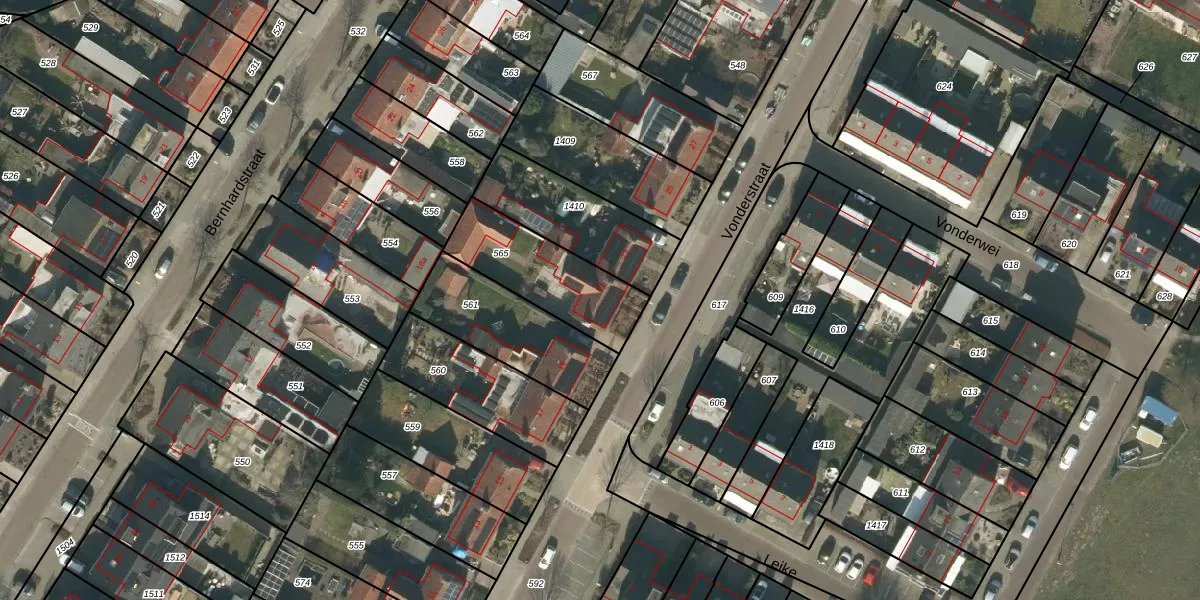 Het perceel waarop Vonderstraat 21 staat heeft een oppervlakte van 355 m². Dit is een groot perceel. De perceeloppervlakte wordt geregistreerd door het Kadaster. Gedetailleerde informatie over de maten van dit perceel kunt u vinden in het rapport Kadastrale kaart met maatvoering van Vonderstraat 21.