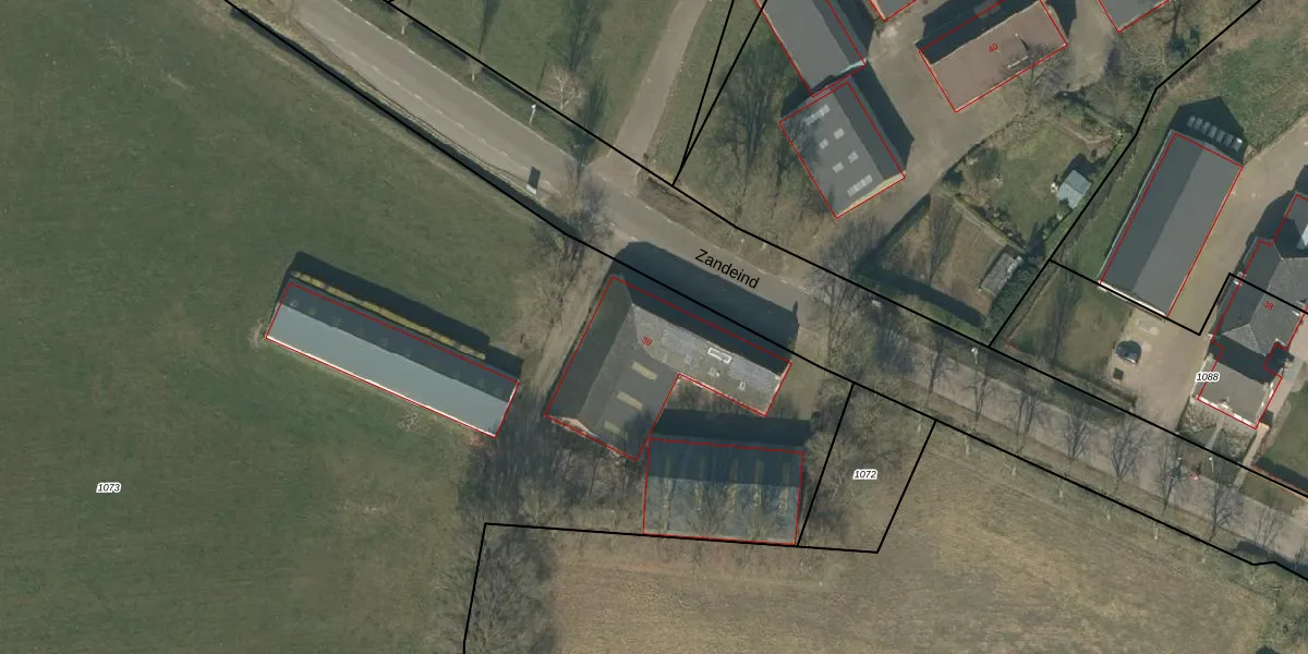 Het perceel waarop Zandeind 39 staat heeft een oppervlakte van 2,1 ha. Dit is een zeer groot perceel. De perceeloppervlakte wordt geregistreerd door het Kadaster. Gedetailleerde informatie over de maten van dit perceel kunt u vinden in het rapport Kadastrale kaart met maatvoering van Zandeind 39.