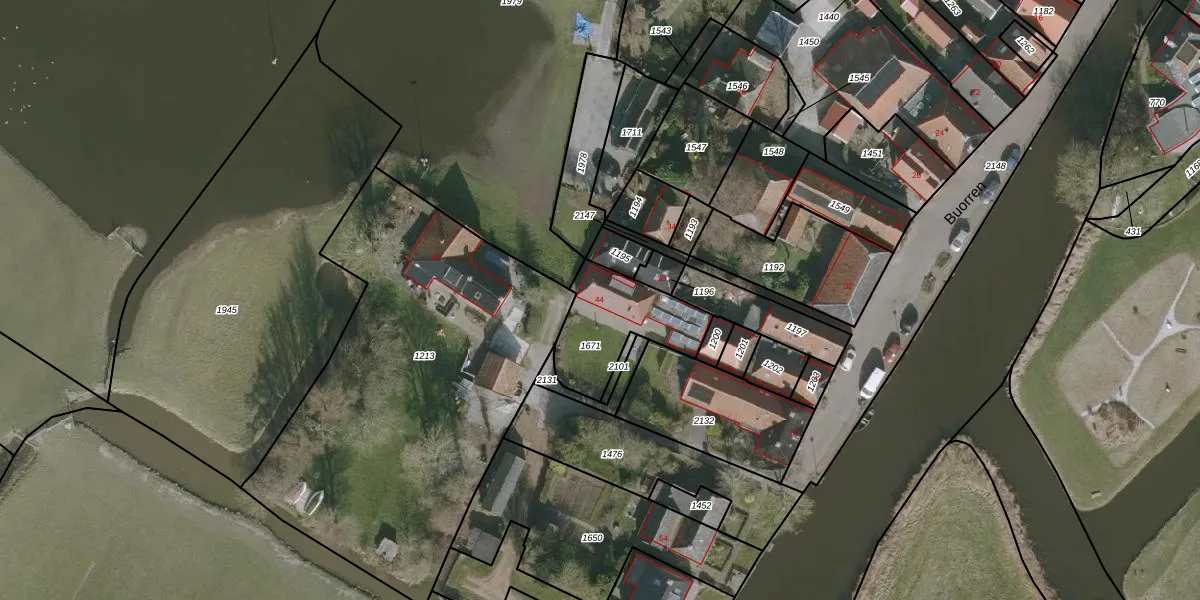 Het perceel waarop Buorren 44 staat heeft een oppervlakte van 310 m². Dit is een groot perceel. De perceeloppervlakte wordt geregistreerd door het Kadaster. Gedetailleerde informatie over de maten van dit perceel kunt u vinden in het rapport Kadastrale kaart met maatvoering van Buorren 44.