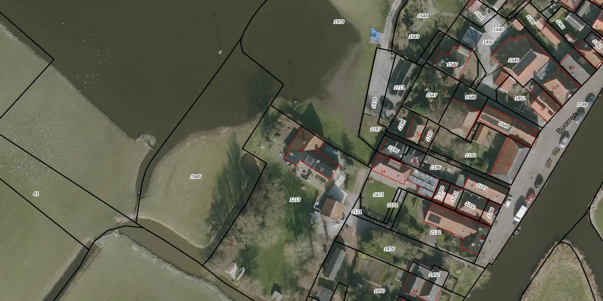 Het perceel waarop Buorren 48 staat heeft een oppervlakte van 2060 m². Dit is een zeer groot perceel. De perceeloppervlakte wordt geregistreerd door het Kadaster. Gedetailleerde informatie over de maten van dit perceel kunt u vinden in het rapport Kadastrale kaart met maatvoering van Buorren 48.