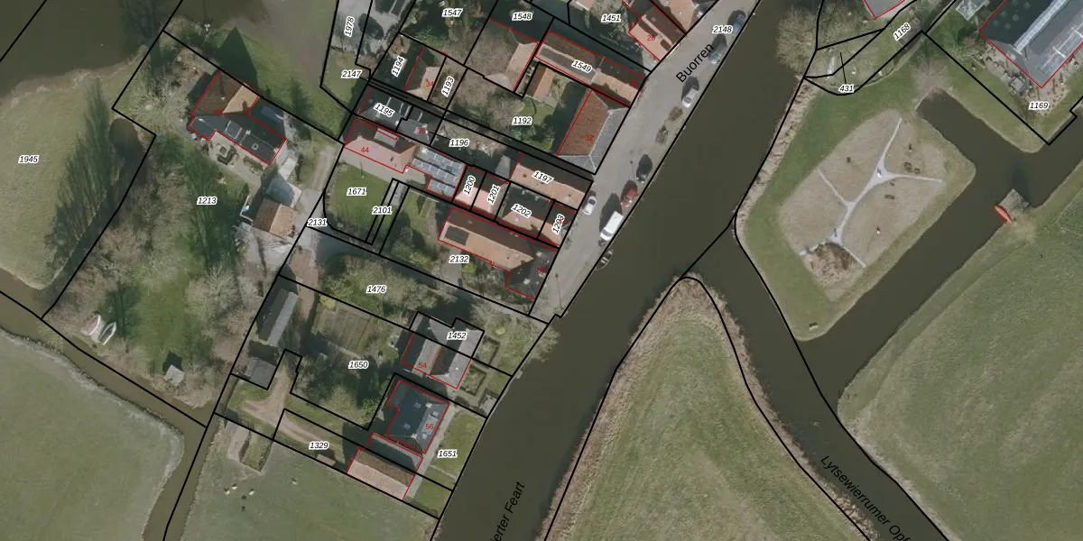 Het perceel waarop Buorren 50 staat heeft een oppervlakte van 411 m². Dit is een groot perceel. De perceeloppervlakte wordt geregistreerd door het Kadaster. Gedetailleerde informatie over de maten van dit perceel kunt u vinden in het rapport Kadastrale kaart met maatvoering van Buorren 50.