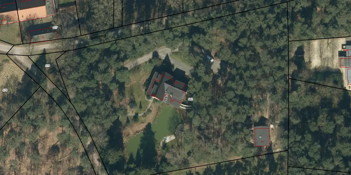 Het perceel waarop Bosweg 5 staat heeft een oppervlakte van 9700 m². Dit is een zeer groot perceel. De perceeloppervlakte wordt geregistreerd door het Kadaster. Gedetailleerde informatie over de maten van dit perceel kunt u vinden in het rapport Kadastrale kaart met maatvoering van Bosweg 5.