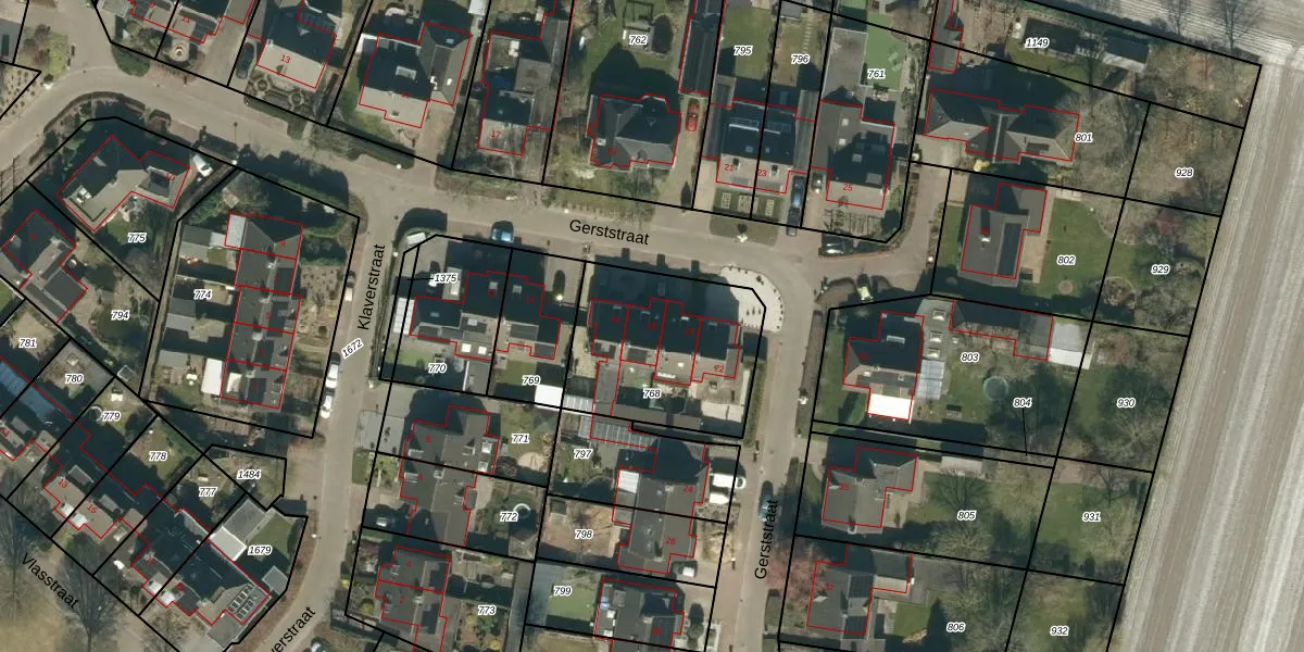 Het perceel waarop Gerststraat 18 staat heeft een oppervlakte van 639 m². Dit is een groot perceel. De perceeloppervlakte wordt geregistreerd door het Kadaster. Gedetailleerde informatie over de maten van dit perceel kunt u vinden in het rapport Kadastrale kaart met maatvoering van Gerststraat 18.