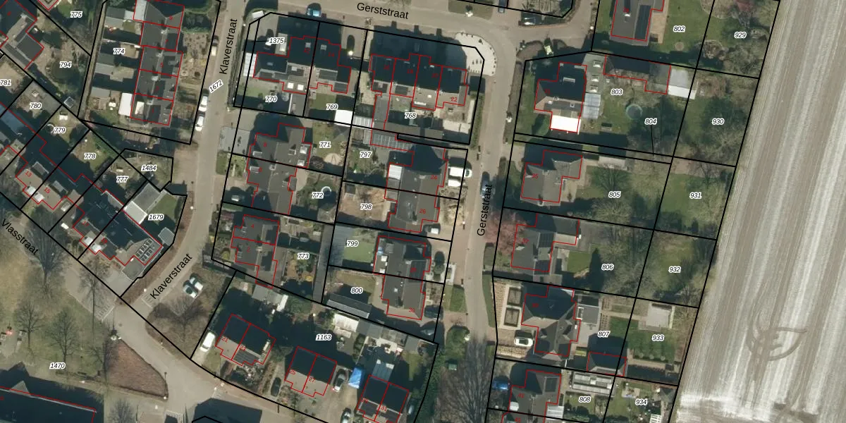 Gerststraat 26 is gelegen op kadastraal perceel RHV00E798. Deze kadastrale aanduiding is uniek en wordt gebruikt door het Kadaster om eigendomsrechten en andere zakelijke rechten vast te leggen. Het perceel maakt onderdeel uit van de kadastrale gemeente Riethoven.