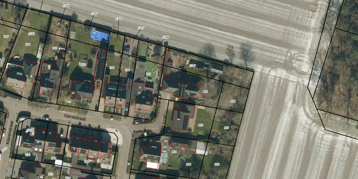 Gerststraat 27 is gelegen op kadastraal perceel RHV00E801. Deze kadastrale aanduiding is uniek en wordt gebruikt door het Kadaster om eigendomsrechten en andere zakelijke rechten vast te leggen. Het perceel maakt onderdeel uit van de kadastrale gemeente Riethoven.