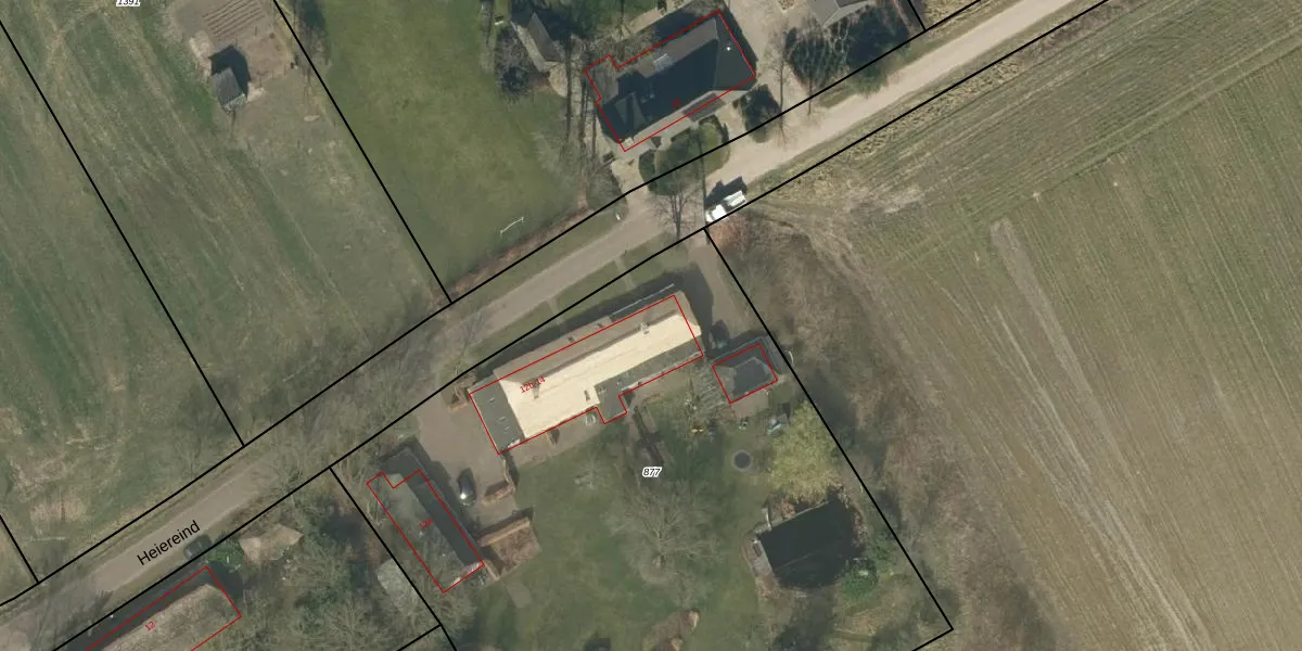 Het perceel waarop Heiereind 14 staat heeft een oppervlakte van 5265 m². Dit is een zeer groot perceel. De perceeloppervlakte wordt geregistreerd door het Kadaster. Gedetailleerde informatie over de maten van dit perceel kunt u vinden in het rapport Kadastrale kaart met maatvoering van Heiereind 14.