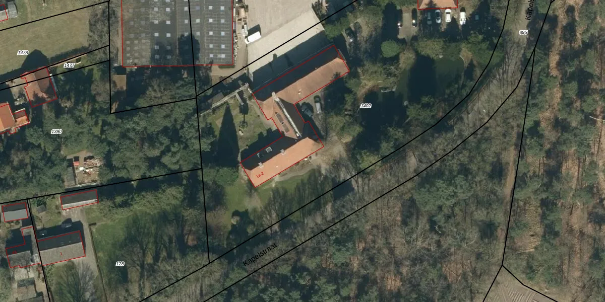 Het perceel waarop Kapelstraat 1-b staat heeft een oppervlakte van 5050 m². Dit is een zeer groot perceel. De perceeloppervlakte wordt geregistreerd door het Kadaster. Gedetailleerde informatie over de maten van dit perceel kunt u vinden in het rapport Kadastrale kaart met maatvoering van Kapelstraat 1-b.