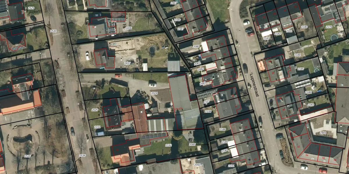 Het adres ligt op het perceel RHV00-B-2024, dat zich in de kadastrale gemeente Riethoven bevindt. Het perceel is kleiner dan gemiddeld in Riethoven. Het perceel is 1710 m² groot, terwijl het gemiddelde ligt op 6536,16 m². De grootste perceeloppervlakte in de kadastrale gemeente is 59,5 ha. De kleinste oppervlakte bedraagt 1 m². Er zijn 3 adressen aanwezig op het perceel. De huidige grenzen van het perceel zijn digitaal in de Basisregistratie Kadaster (BRK) geregistreerd op 15-01-2008.