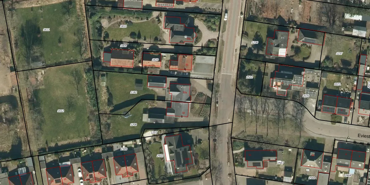Het adres ligt op het perceel RHV00-E-1182, dat zich in de kadastrale gemeente Riethoven bevindt. Het perceel is 1017 m² groot. Dat is kleiner dan de gemiddelde perceeloppervlakte in Riethoven, dat op 6536,16 m² ligt. Het grootste perceel in de kadastrale gemeente is 59,5 ha. Het kleinste perceel heeft een oppervlakte van 1 m². Op het perceel bevinden zich geen andere adressen. In de Basisregistratie Kadaster (BRK) werden de grenzen van het perceel geregistreerd op 04-12-2020.