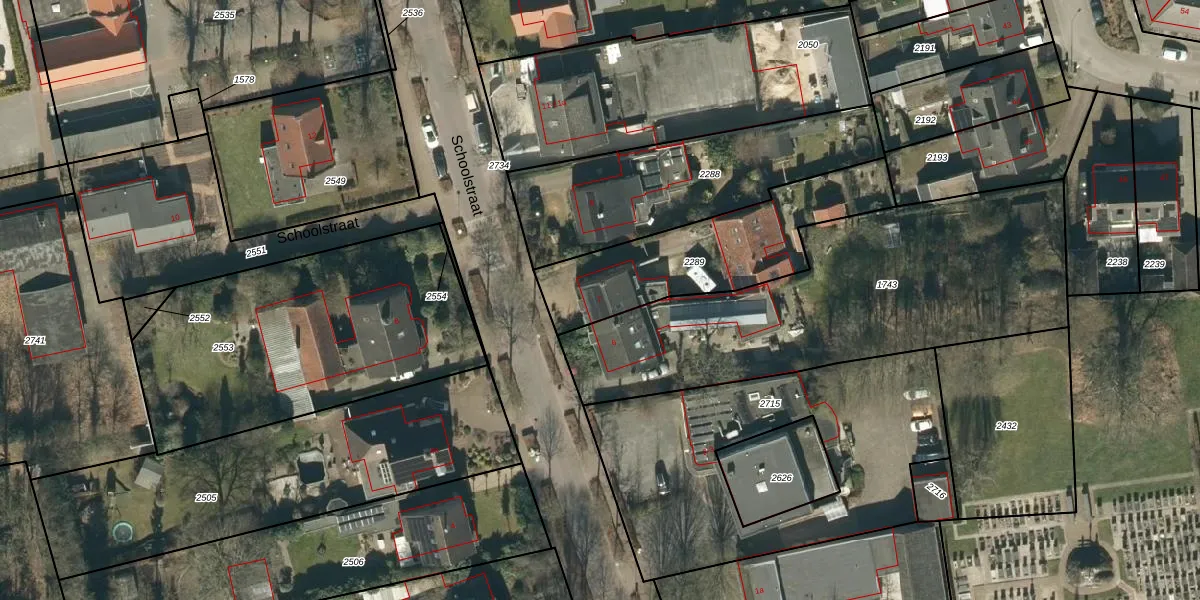 Het perceel waarop Schoolstraat 7 staat heeft een oppervlakte van 665 m². Dit is een groot perceel. De perceeloppervlakte wordt geregistreerd door het Kadaster. Gedetailleerde informatie over de maten van dit perceel kunt u vinden in het rapport Kadastrale kaart met maatvoering van Schoolstraat 7.