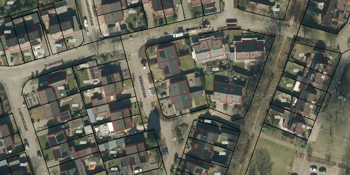 Het perceel waarop Wikkestraat 18 staat heeft een oppervlakte van 2786 m². Dit is een zeer groot perceel. De perceeloppervlakte wordt geregistreerd door het Kadaster. Gedetailleerde informatie over de maten van dit perceel kunt u vinden in het rapport Kadastrale kaart met maatvoering van Wikkestraat 18.