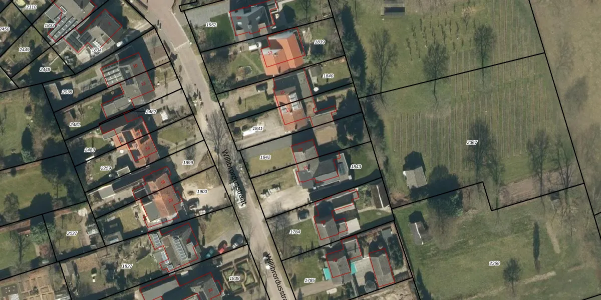 Het perceel waarop Willibrordusstraat 19 staat heeft een oppervlakte van 433 m². Dit is een groot perceel. De perceeloppervlakte wordt geregistreerd door het Kadaster. Gedetailleerde informatie over de maten van dit perceel kunt u vinden in het rapport Kadastrale kaart met maatvoering van Willibrordusstraat 19.