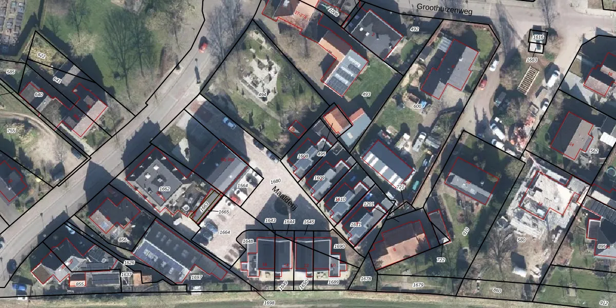 Het perceel waarop Maalderij 2 staat heeft een oppervlakte van 180 m². Dit is een middelgroot perceel. De perceeloppervlakte wordt geregistreerd door het Kadaster. Gedetailleerde informatie over de maten van dit perceel kunt u vinden in het rapport Kadastrale kaart met maatvoering van Maalderij 2.