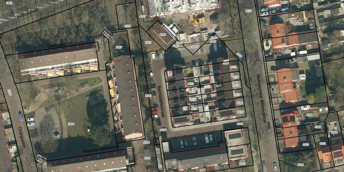 Bernadettestraat 12 is gelegen op kadastraal perceel GZE00A9172. Deze kadastrale aanduiding is uniek en wordt gebruikt door het Kadaster om eigendomsrechten en andere zakelijke rechten vast te leggen. Het perceel maakt onderdeel uit van de kadastrale gemeente Gilze en Rijen.
