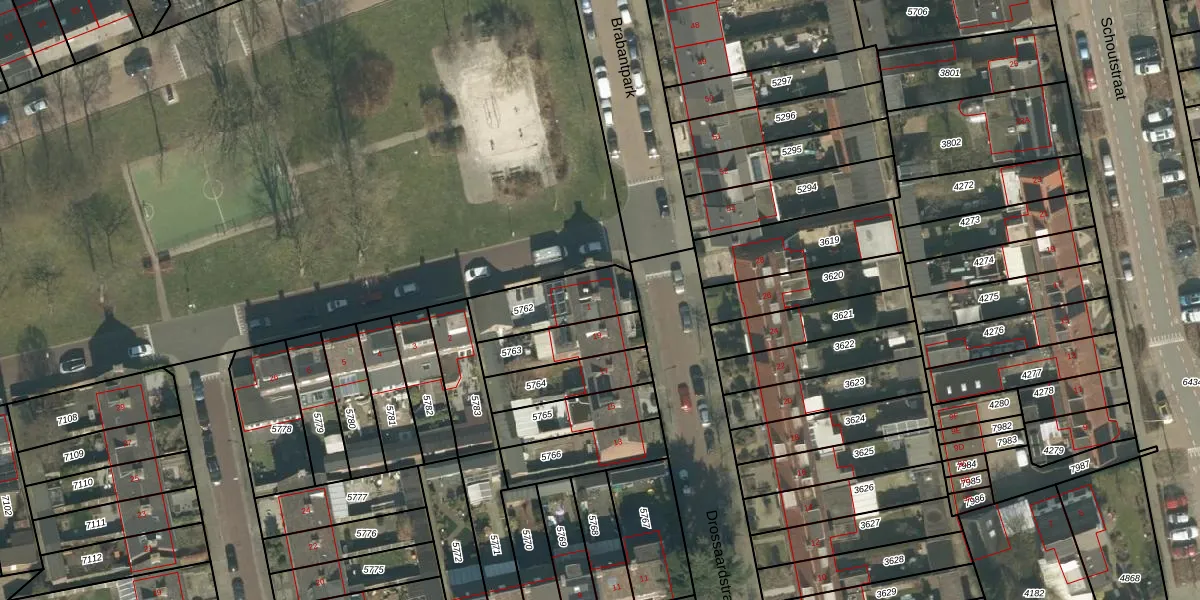 Het perceel waarop Brabantpark 1 staat heeft een oppervlakte van 216 m². Dit is een middelgroot perceel. De perceeloppervlakte wordt geregistreerd door het Kadaster. Gedetailleerde informatie over de maten van dit perceel kunt u vinden in het rapport Kadastrale kaart met maatvoering van Brabantpark 1.