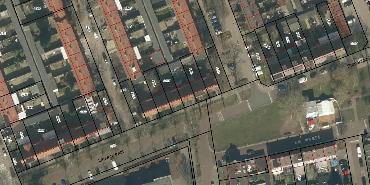 Het perceel waarop Brabantpark 19 staat heeft een oppervlakte van 5479 m². Dit is een zeer groot perceel. De perceeloppervlakte wordt geregistreerd door het Kadaster. Gedetailleerde informatie over de maten van dit perceel kunt u vinden in het rapport Kadastrale kaart met maatvoering van Brabantpark 19.