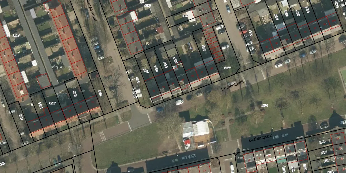 Het perceel waarop Brabantpark 24 staat heeft een oppervlakte van 185 m². Dit is een middelgroot perceel. De perceeloppervlakte wordt geregistreerd door het Kadaster. Gedetailleerde informatie over de maten van dit perceel kunt u vinden in het rapport Kadastrale kaart met maatvoering van Brabantpark 24.