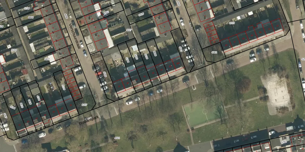 Het perceel waarop Brabantpark 33 staat heeft een oppervlakte van 180 m². Dit is een middelgroot perceel. De perceeloppervlakte wordt geregistreerd door het Kadaster. Gedetailleerde informatie over de maten van dit perceel kunt u vinden in het rapport Kadastrale kaart met maatvoering van Brabantpark 33.