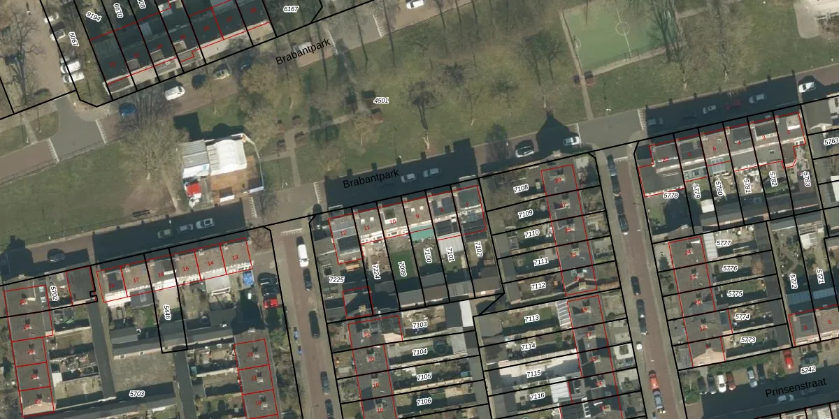 Het perceel waarop Brabantpark 9 staat heeft een oppervlakte van 166 m². Dit is een middelgroot perceel. De perceeloppervlakte wordt geregistreerd door het Kadaster. Gedetailleerde informatie over de maten van dit perceel kunt u vinden in het rapport Kadastrale kaart met maatvoering van Brabantpark 9.