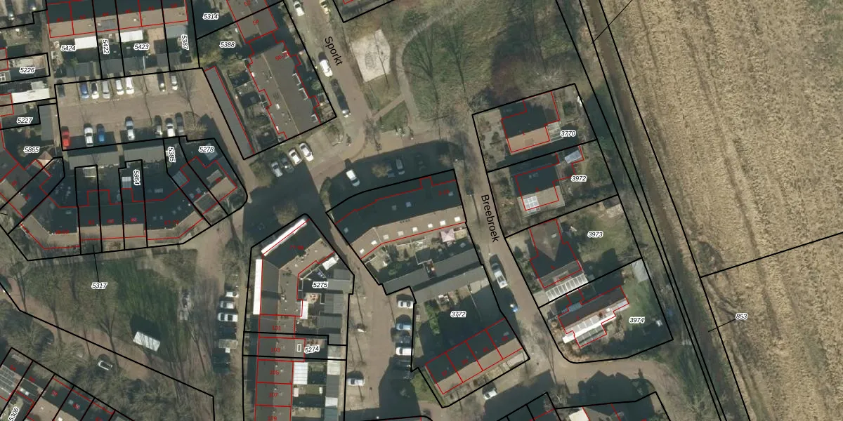 Het perceel waarop Breebroek 12 staat heeft een oppervlakte van 1275 m². Dit is een zeer groot perceel. De perceeloppervlakte wordt geregistreerd door het Kadaster. Gedetailleerde informatie over de maten van dit perceel kunt u vinden in het rapport Kadastrale kaart met maatvoering van Breebroek 12.