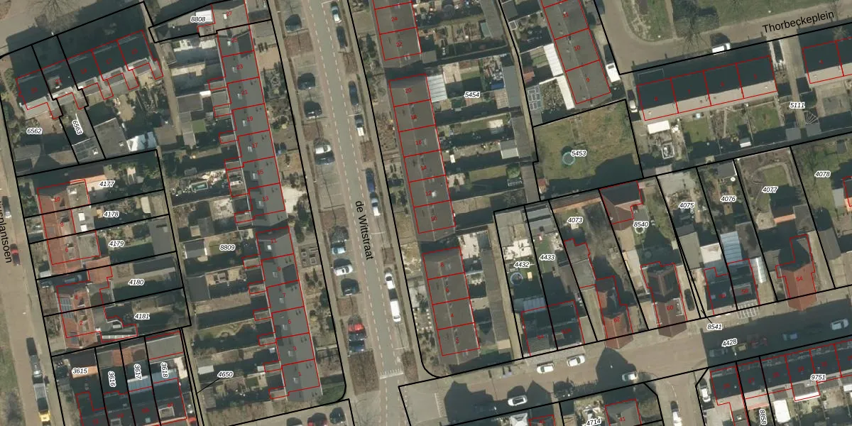 Het perceel waarop de Wittstraat 10 staat heeft een oppervlakte van 2680 m². Dit is een zeer groot perceel. De perceeloppervlakte wordt geregistreerd door het Kadaster. Gedetailleerde informatie over de maten van dit perceel kunt u vinden in het rapport Kadastrale kaart met maatvoering van de Wittstraat 10.