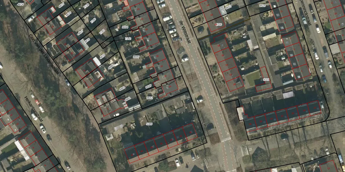 Het perceel waarop de Wittstraat 29 staat heeft een oppervlakte van 266 m². Dit is een middelgroot perceel. De perceeloppervlakte wordt geregistreerd door het Kadaster. Gedetailleerde informatie over de maten van dit perceel kunt u vinden in het rapport Kadastrale kaart met maatvoering van de Wittstraat 29.