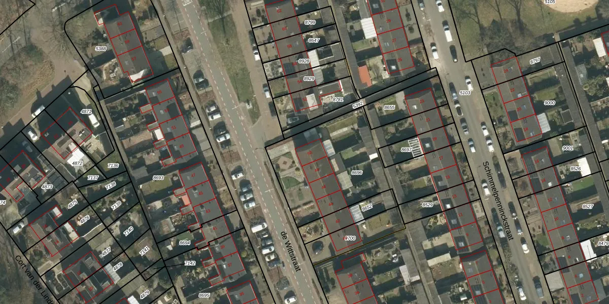 Het perceel waarop de Wittstraat 50 staat heeft een oppervlakte van 1494 m². Dit is een zeer groot perceel. De perceeloppervlakte wordt geregistreerd door het Kadaster. Gedetailleerde informatie over de maten van dit perceel kunt u vinden in het rapport Kadastrale kaart met maatvoering van de Wittstraat 50.