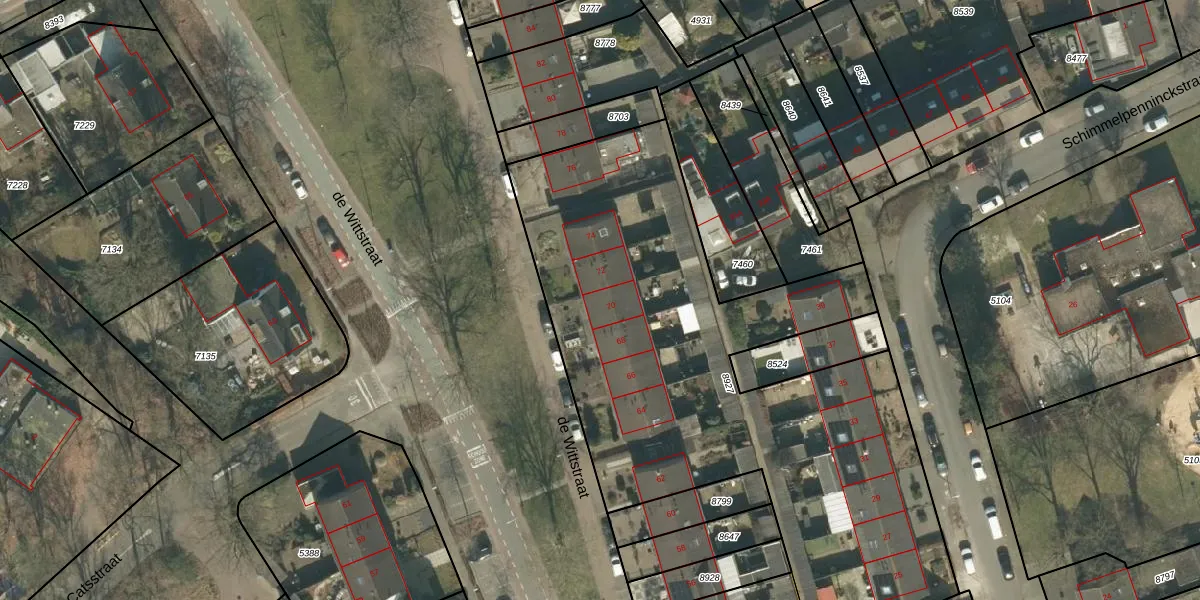 Het perceel waarop de Wittstraat 70 staat heeft een oppervlakte van 2995 m². Dit is een zeer groot perceel. De perceeloppervlakte wordt geregistreerd door het Kadaster. Gedetailleerde informatie over de maten van dit perceel kunt u vinden in het rapport Kadastrale kaart met maatvoering van de Wittstraat 70.