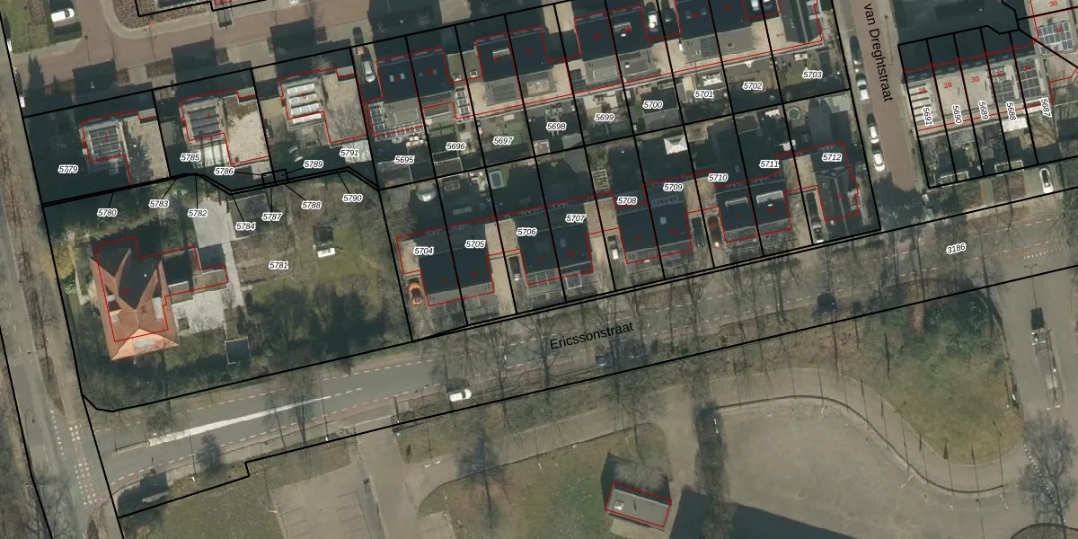 Ericssonstraat 3 is gelegen op kadastraal perceel GZE00B5706. Deze kadastrale aanduiding is uniek en wordt gebruikt door het Kadaster om eigendomsrechten en andere zakelijke rechten vast te leggen. Het perceel maakt onderdeel uit van de kadastrale gemeente Gilze en Rijen.