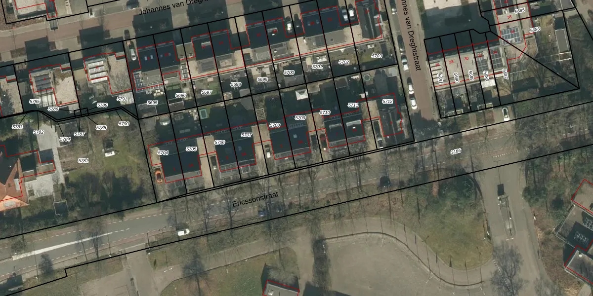 Ericssonstraat 5-A is gelegen op kadastraal perceel GZE00B5709. Deze kadastrale aanduiding is uniek en wordt gebruikt door het Kadaster om eigendomsrechten en andere zakelijke rechten vast te leggen. Het perceel maakt onderdeel uit van de kadastrale gemeente Gilze en Rijen.